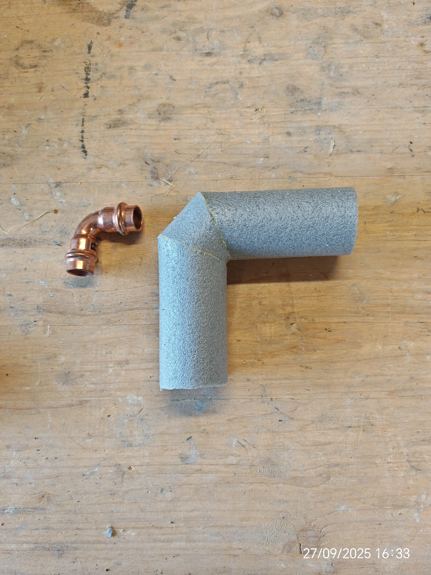 Hotový výrobok - vhodne prerezať a navliecť na potrubie - celá aplikácia trvá asi 5 sekúnd.... Hrúbka steny izolácie - 9, 13 a 20 mm v základných uhloch 45° a 90°, iný uhol na objednávku.